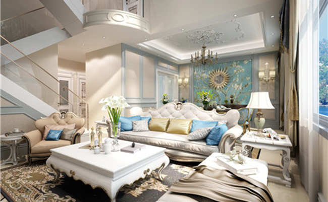 優雅的孔雀藍色喚醒我們的視覺感受,輕柔高雅,搭配溫潤的大地色系米色,將糅合尊貴華麗之感。采用簡約的歐式風格,是由于它集成著傳統歐式風格的裝飾特點,利用空間的層次感,特殊的圖案來詮釋高貴與典雅,同時融入了現代的生活元素,變化的線條,自然的花紋及裝飾讓空間柔美、雅致,遒勁而富于節奏感。
