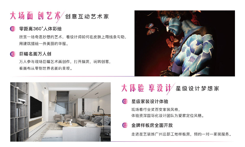 2018年1月6日在廣州白云區(qū)五號(hào)停機(jī)坪購(gòu)物廣場(chǎng)舉行盛大落地活動(dòng),到場(chǎng)客戶可欣賞人體彩繪,參與巨幅名畫創(chuàng)作,好禮與樂趣并行。活動(dòng)現(xiàn)場(chǎng)不止有豐富互動(dòng),到場(chǎng)咨詢客戶還可獲得精美禮品一份?;顒?dòng)現(xiàn)場(chǎng)資深設(shè)計(jì)師云集,一對(duì)一專業(yè)咨詢,體驗(yàn)優(yōu)質(zhì)的家裝服務(wù)。
