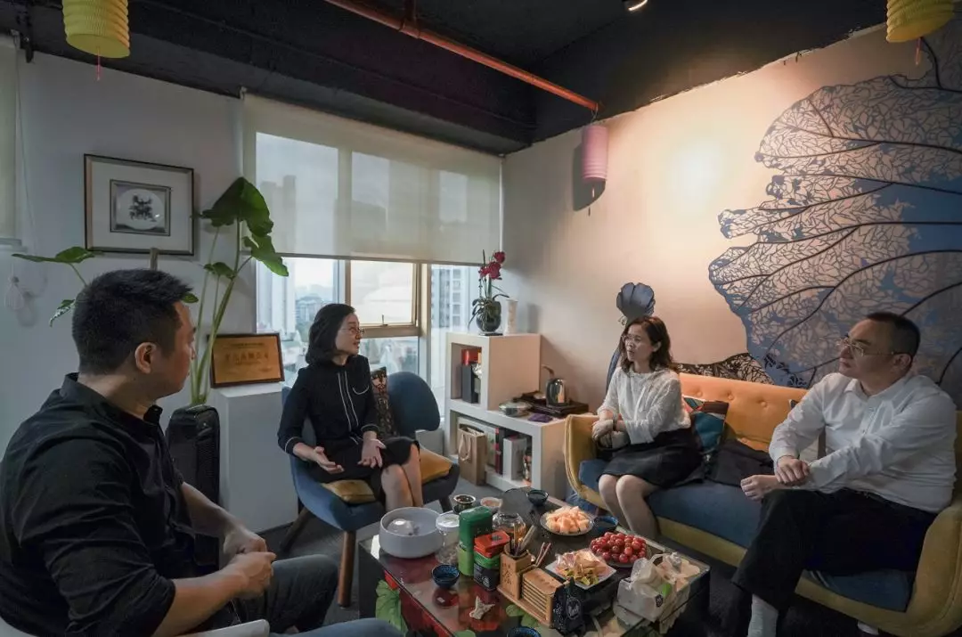 業(yè)主與星藝裝飾的劉總、陳工四人交談甚歡