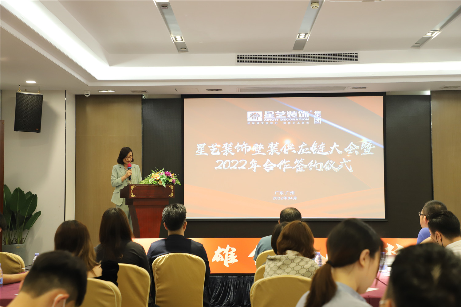 2022年4月27日,星藝裝飾集團(tuán)廣州分公司隆重舉行星藝裝飾整裝供應(yīng)鏈大會(huì)。“群雄合力◆聚夢(mèng)同行”,星藝裝飾始終堅(jiān)信合作共贏是企業(yè)生存、發(fā)展的最高智慧,如今的累累碩果更離不開每位合作供應(yīng)商的高度信賴與鼎力支持。