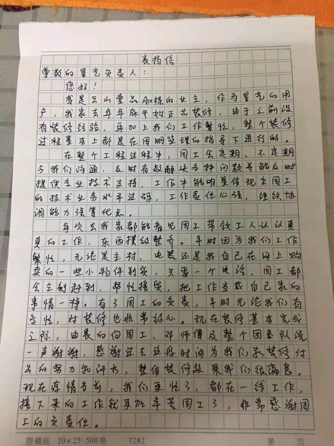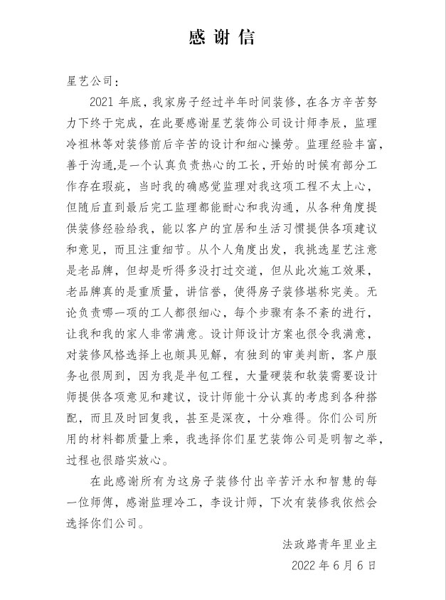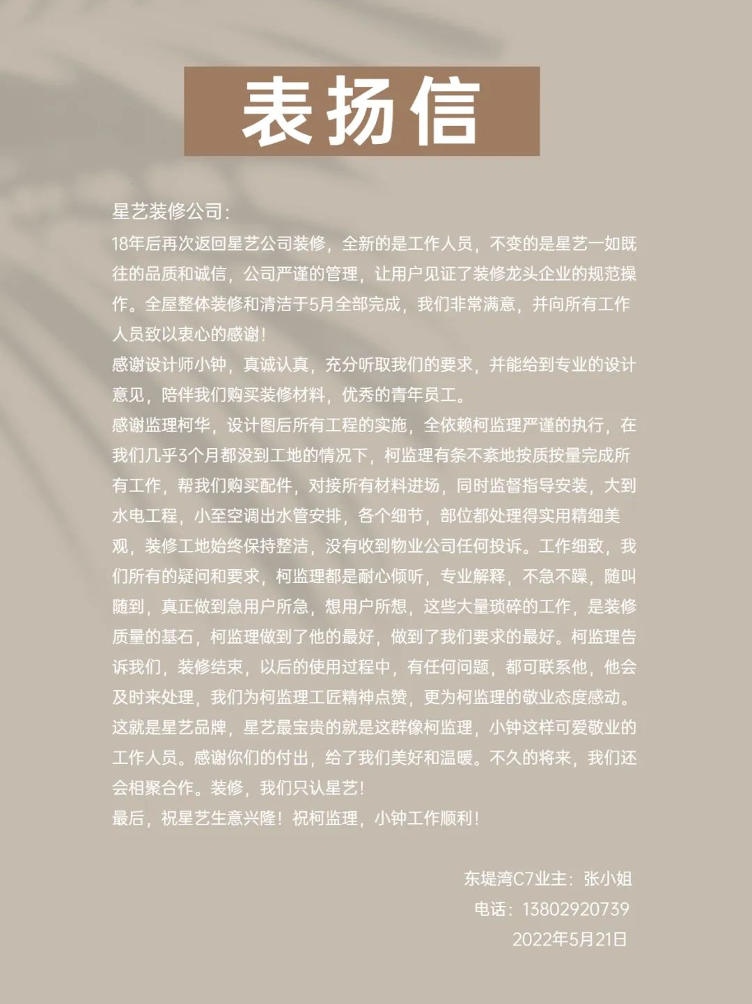 客戶贊許|一封封來信帶來最誠摯的謝意:“裝修,我們只認星藝”!