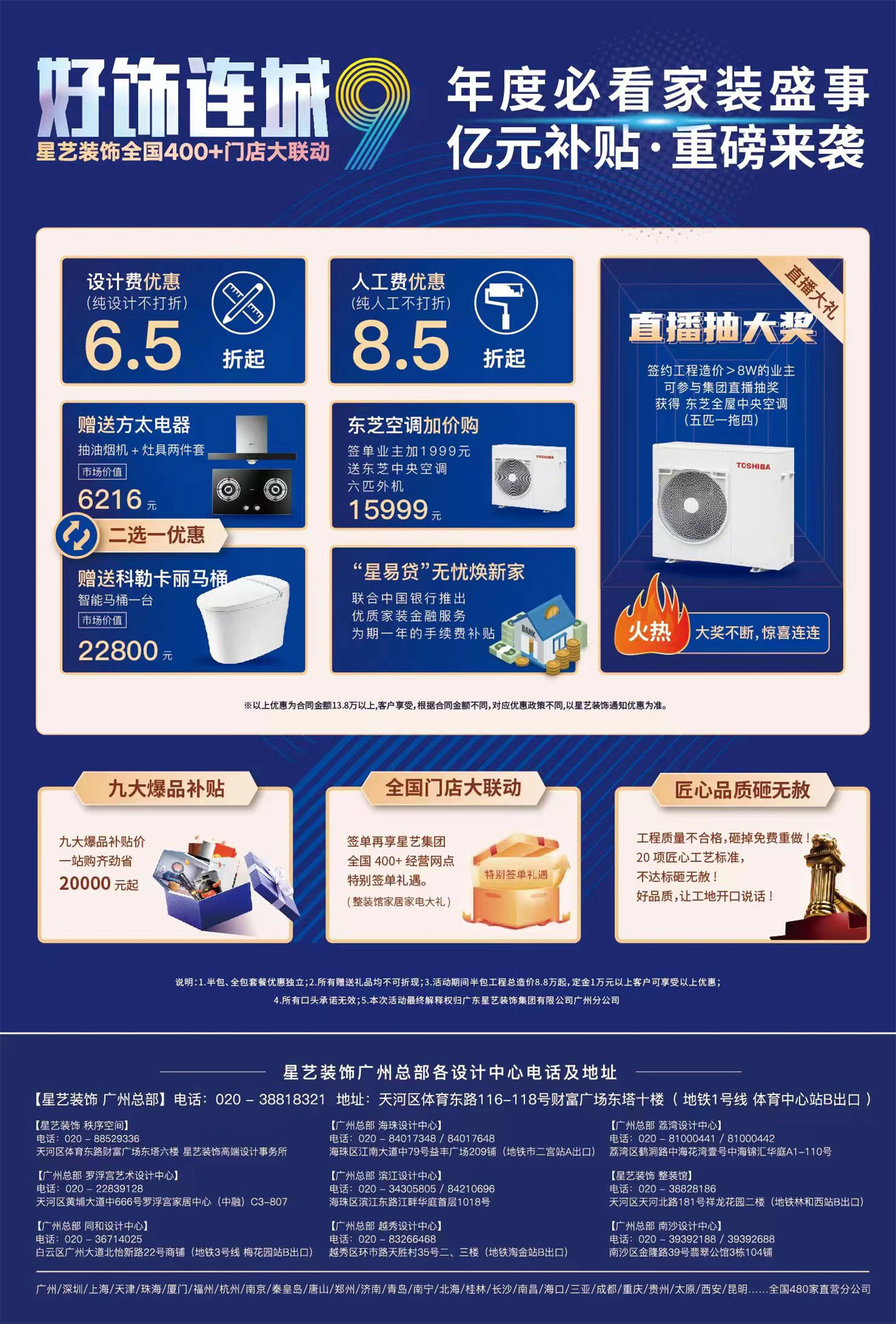 2022年9月6日,星藝裝飾集團廣州總部《好飾連城9》活動誓師啟動大會正式開始,此次活動也是星藝裝飾全國400+門店的一次大聯(lián)動。云天收夏色,木葉動秋聲,一陣陣清風(fēng)掠過訴說著每位星藝人奮勇向前的不竭力量,前路浩浩蕩蕩,萬事盡可期待。