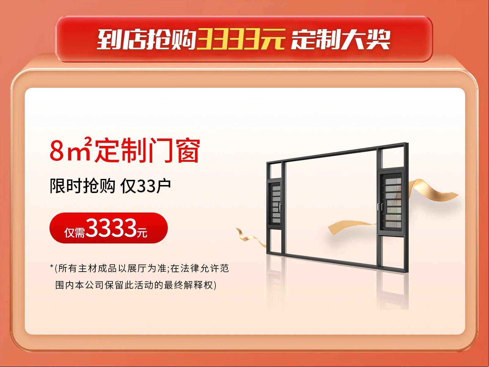 為慶祝星藝33周年活動,現推出3333元搶購8㎡定制門窗,限時限量,有裝修需求的小伙伴抓緊時間啦!