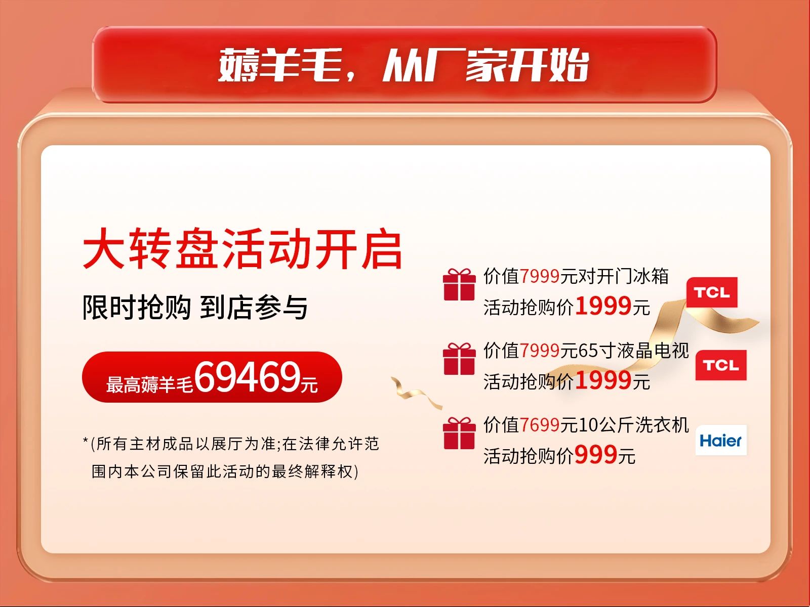 好飾連城活動期間,特惠享不停!到店參與大轉盤活動,限時搶購家電出廠價!先到先得~
