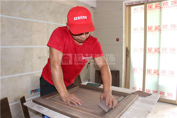 底漆干透后,用600#砂紙輕磨,以磨平附著在飾面板表面的灰塵顆粒即可。